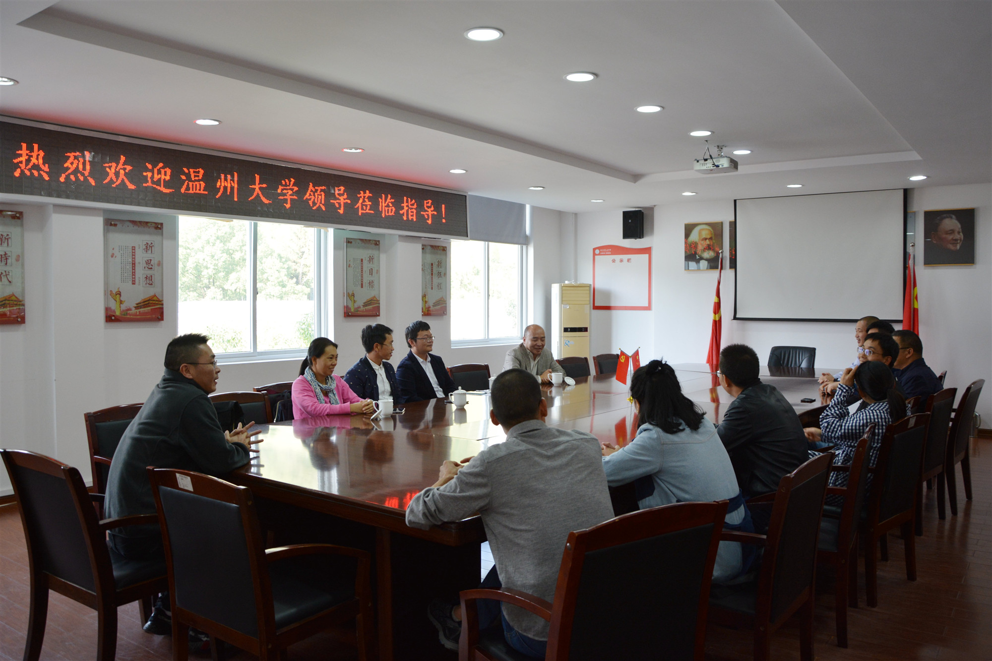 永嘉中学董事长金家道、教学副董事长金玲勇和后勤副董事长徐仁接待了到访的四位老师。见面后永嘉中学安排了一场座谈会,该校各年级段的段长、数学与物理课程组的组长和部分任课老师一起参加了交流。
