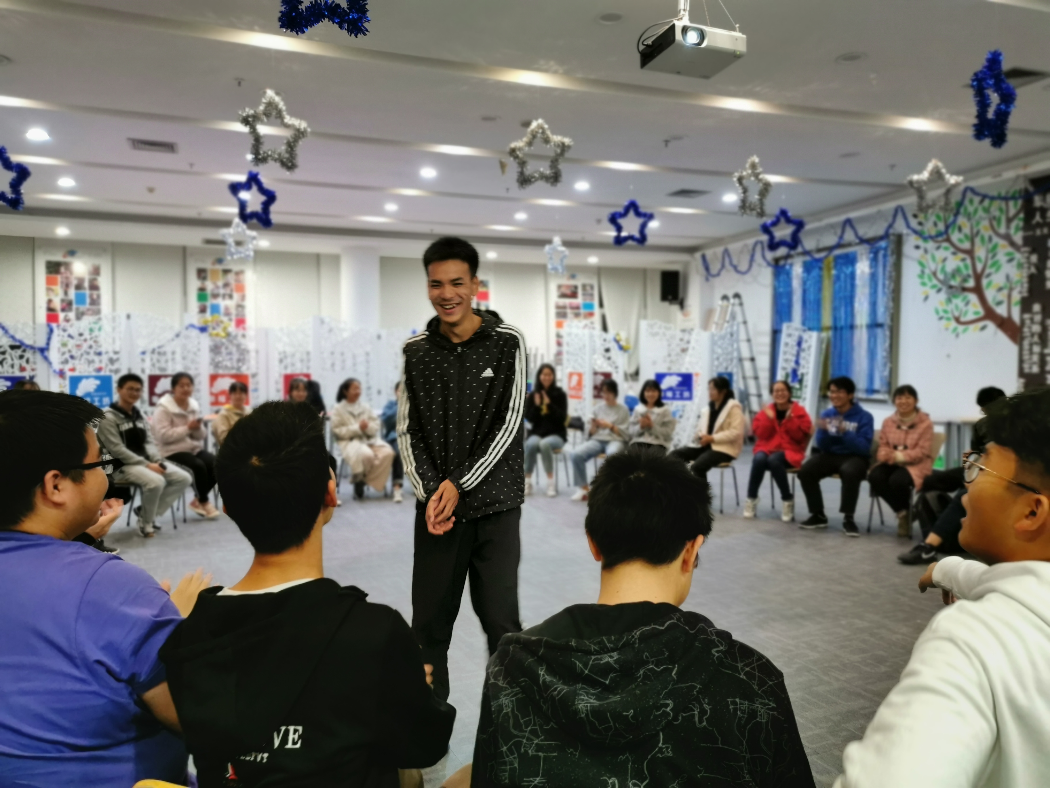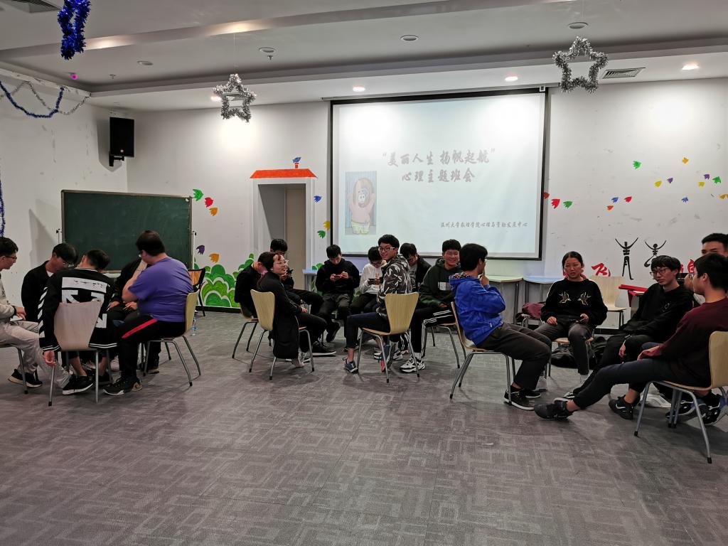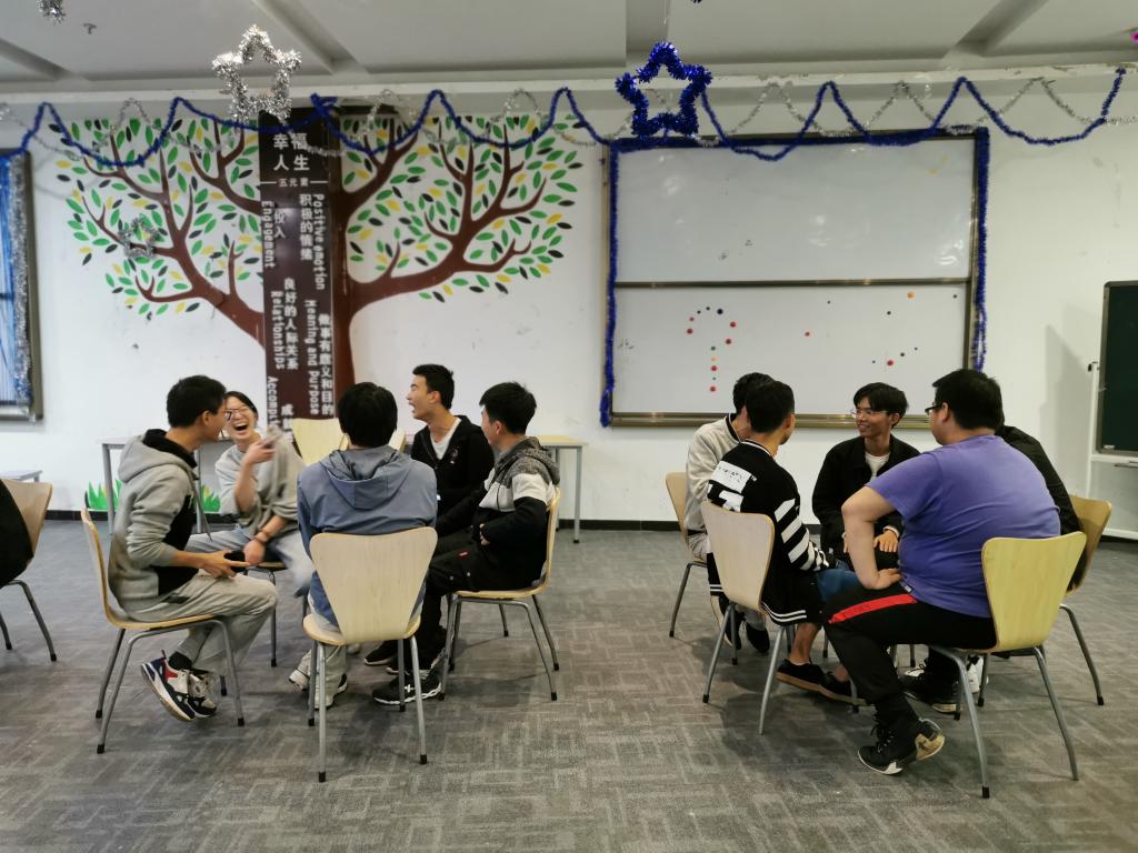 11月27日18:30,19物理于老员工活动中心幸福工坊开展团体辅导活动,活动由辅导员吴梦柔主持开展,19物理全体同学参加。活动伊始,辅导员吴梦柔通过“大风吹”“滚雪球”等几个小游戏带同学们完成了热身活动,同学们很快融入到活动中并渐渐找到了参与活动的乐趣。随后,同学们以小组为单位展开活动,活动过程中先后以“我的九宫格”“写出我的烦恼”等活动帮助大家认识自己,悦纳自己。旨在通过结构化的心理游戏和活动中,加深彼此之间的了解,促进班级内的交流与合作,增强集体凝聚力,让其在尊重、平等、保密、理解的氛围中,分享老员工活及成长的感悟,增进自我认识和接纳。
