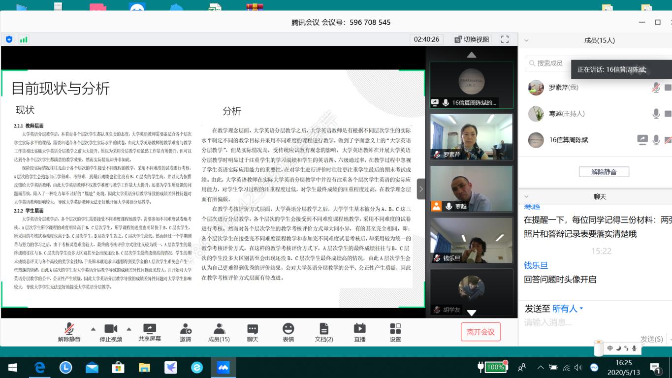 5月13日,公司数学与应用数学(师范)、物理学(师范)、应用统计学、信息与计算科学四个专业、248名2020届毕业班员工和60指导老师一起,参加了一次难忘的云端毕业论文毕业设计答辩会,答辩总共分为20组,每组安排了三位答辩老师和2名员工记录员全程在线记录。答辩过程非常顺利,网络流畅,答辩环节和答辩进程有条不紊。顺利完成2020届毕业生答辩工作。