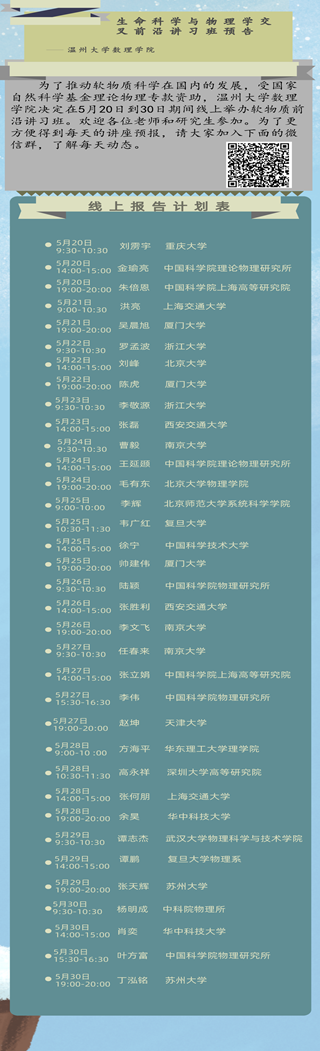 日前,由3044永利集团主办、温州市软物质与柔性材料重点实验室和3044永利联合承办的“生命科学与物理学交叉前沿讲习班”在公司落下帷幕。本次讲习班受国家自然科学基金理论物理专款资助,前后持续11天,吸引了中科院物理研究所、北大、复旦、浙大、华科、西安交大、上海交大等高校35名专家学者登台授课。