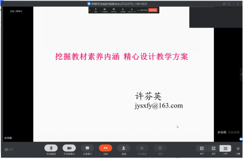 第二环节中,许芬英老师开展了“挖掘教材素养内涵,精心设计教学方案”的讲座,结合丰富的教材例子解读挖掘教材的核心素养的必要性,提倡深度学习、大单元设计、项目化学习等设计教学方案。