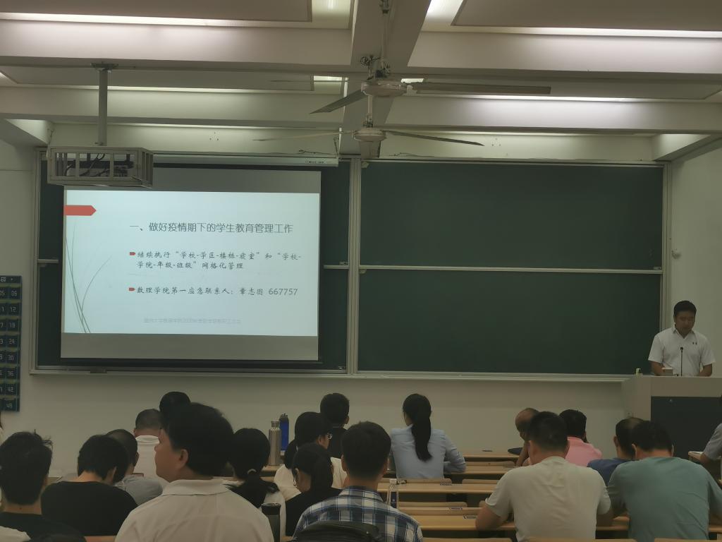 副经理蔡风景围绕日常教学管理指出本学期工作的2个重点,一为积极迎接10月份应用数学师范类专业认证工作,要做好达成度计算、凸显能力考核要素等;二为积极谋划专业建设申报,对省一流课程、国家一流专业等申报工作要提前安排,早做谋划。另外也对修订教学大纲,课程补修补考等教学常态化工作作出安排。