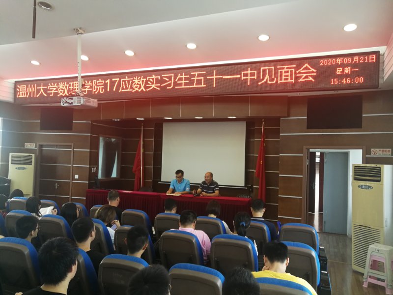 9月21日下午,15名同学来到温州市地五十一中学实习基地,同行的还有3位指导师和公司领导高利新经理。同一时间,另一批11个员工在章志图副书记和朱中坚等老师的带领下,来到龙湾区实验中学实习基地。