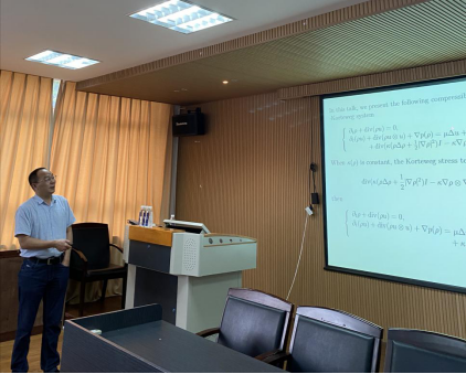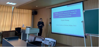 2020年10月15日下午,应公司赵才地教授邀请,中科院华罗庚首席研究员、国家杰出青年基金获得者黄飞敏教授在学术报告厅做了题为《Stability of planar rarefaction waves for scalar viscous conservation law under periodic perturbations》的学术报告,华东理工大学黎野平教授做了题为《Asymptotic stability of the stationary solution to an out-flow problem for the Navier-Stokes-Korteweg equations of compressible fluids》的学术报告,报告由经理高利新教授主持。公司安荣、郭洪欣、黄琼伟等教授,以及微分方程与动力系统方向的研究生参加了学术活动。