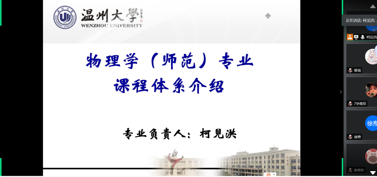 2020年5月11日晚上,公司物理学(师范)专业负责人柯见洪老师分别给18物理和19物理同学进行了一次线上选课指导,为同学们分析课程体系,指导选课情况。