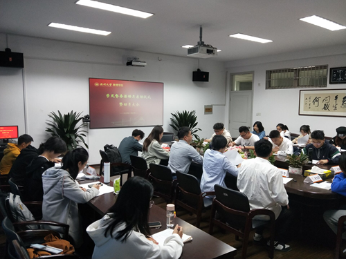 张丽艳作动员讲话,她老师结合近期各个班级的情况,员工的学风情况,希望各班级关注学风建设,加强学风建设。刘伦伦介绍学风督查活动月的内容安排,主要包括优良学风班和学习标兵的展示宣传、学风建设主题团日活动、杜绝课堂违纪行为专项检查等。员工会主席郭佳浩为新生讲解学风建设与评奖评优,并强调要加强学风建设,就要全面提高同学们自主学习积极性和主动性,通过开展“学风督查活动月”系列活动激发员工的学习热情。