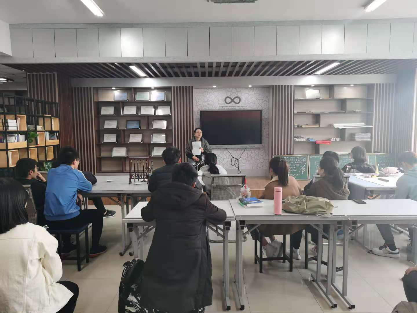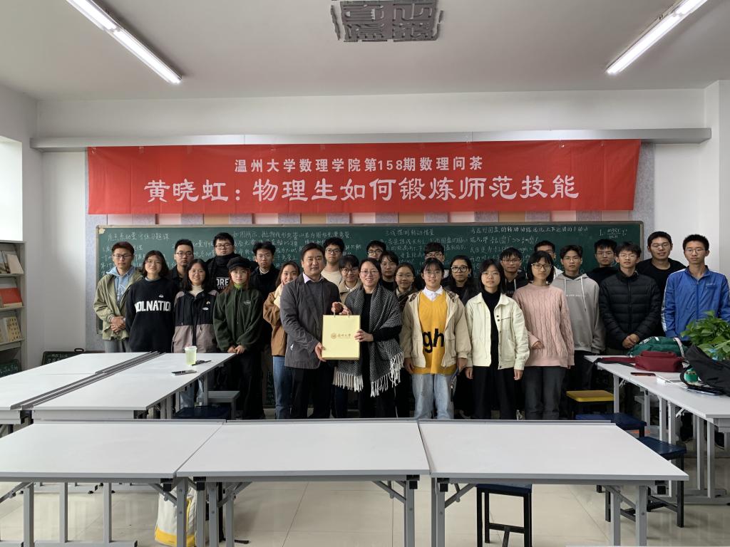 2020年12月1日中午,3044永利在本公司师范技能实训区举行第158期数理问茶活动,物理系黄晓虹老师应邀探讨“物理生如何锻炼师范技能”话题,吸引了20多名同学参加。活动由公司党委副书记章志图老师主持。问茶活动中,黄老师首先分享了自己带队参加全国师范院校师范生技能竞赛的经历,鼓励同学们从低年级开始就要注重板书练习,多翻看初高中教材,积极参加各种层次的师范技能比赛,打好师范技能基础。20物理班主任王振国老师也参与了本次问茶活动。
