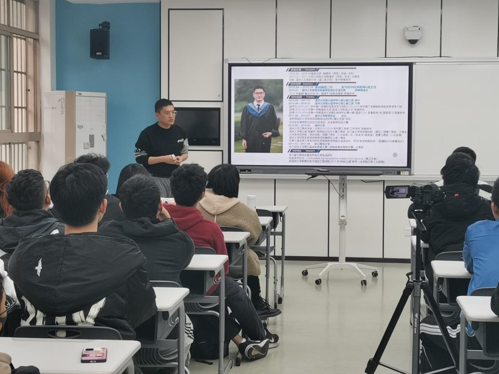 柯见洪老师从物理学(师范)专业简介、培养目标、举措与方式、成效与特色四方面向同学们进行了详细的介绍,用幽默风趣的语言把同学们深入了解物理专业,让同学们体会到物理专业学习的美好前景。