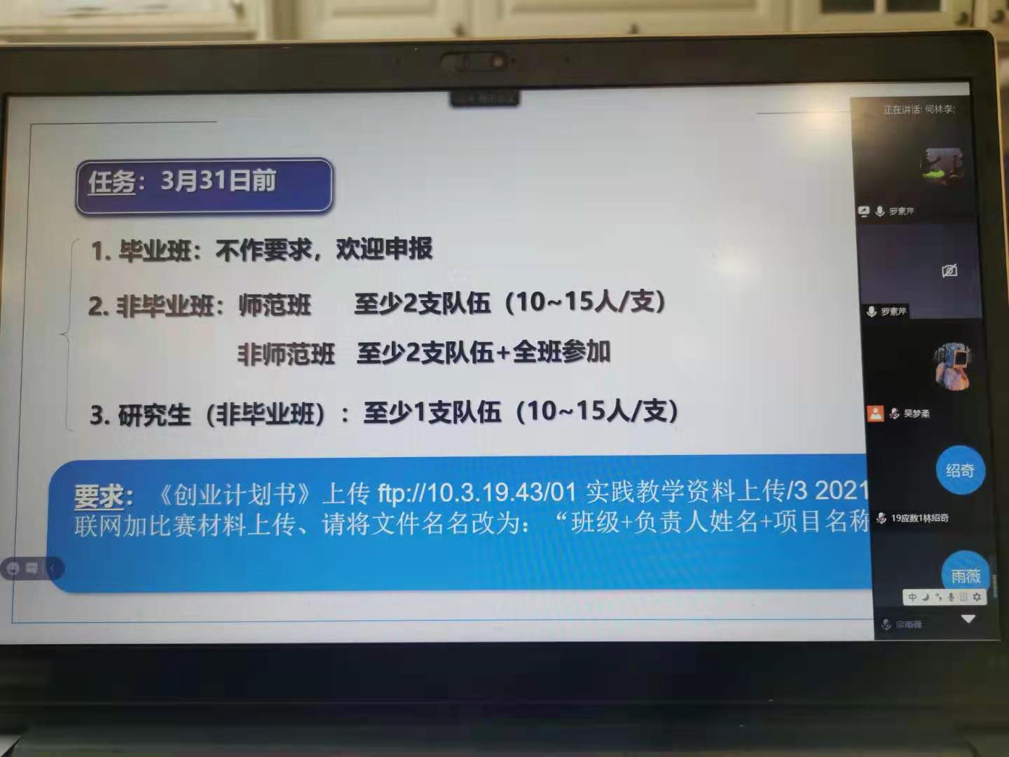 会议最后,罗素芹老师总结了会议的主题,创建了公司互联网+比赛的工作群、回答了同学们现场提出的问题。会议完成了既定目标,圆满完成。