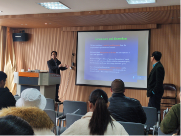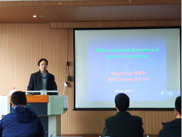 杨荣佳教授分别从研究目的、修正引力场方程、宇宙学的应用以及总结说明四部分展开报告,从度量的非微扰量子化角度考虑了一个修正引力模型并推导出了其等价性,并将其应用于FLRW时空,进而研究了宇宙、膨胀、辐射主导的周期、尘埃主导的周期和暗能量主导的周期的量子涨落的影响。杨荣佳教授还亲切地分享了他在研究过程中遇到的种种困难以及计算改进过程中的难题。探索宇宙的过程漫长而曲折,教授表示未来还有更大的空间值得我们去探索发现。最后大家对于暗物质的存在假设以及量子效应的产生问题进行了讨论,杨荣佳教授耐心地分享了关于宇宙学的知识,满足了大家的知识的欠缺和对宇宙学的好奇。