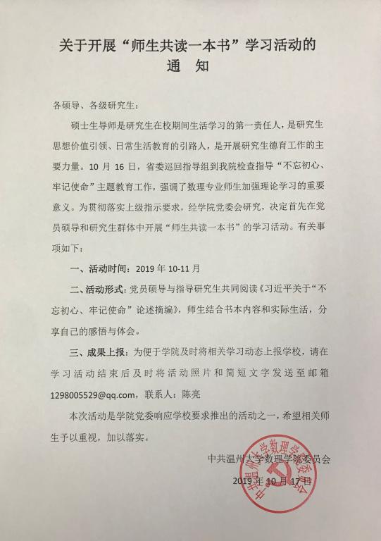 关于开展“师生共读一本书”学习活动的通知
