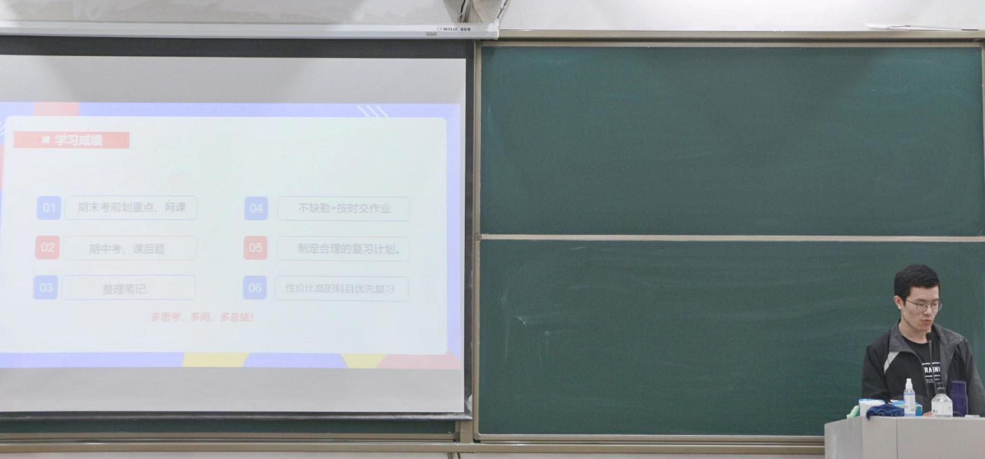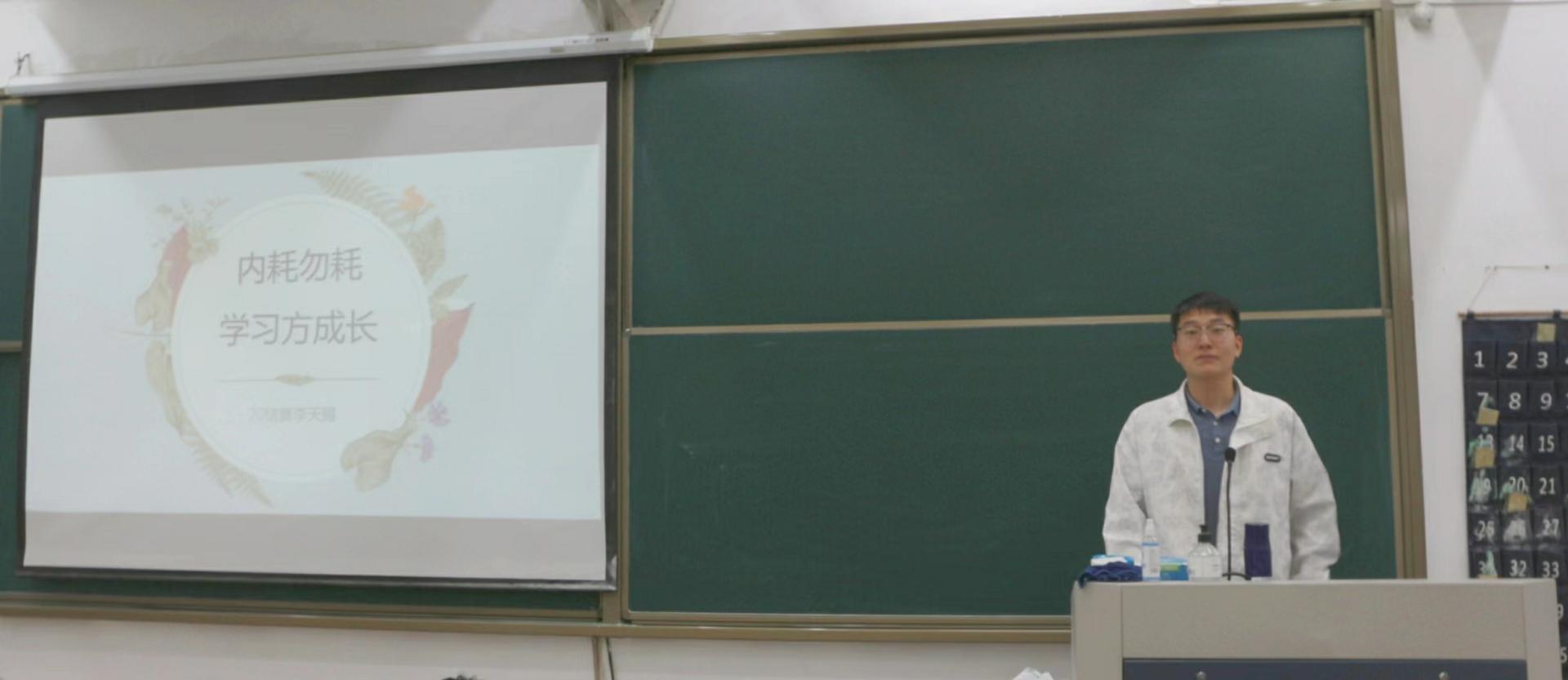 李天赐学长以“内耗勿耗 学习方成长”为主题进行分享,他认为,大学的成绩概念与高中不同,注重平常分数,从平时做起,同样向学弟学妹们介绍了如何挖掘碎片化时间,将这段时间利用在学习上,提升自我。他的分享启示同学们,在忙碌的老员工活中,时间充足且重要,需要有计划、有目标地管理自己的时间。
