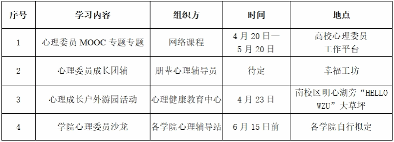 2、心理委员成长团辅具体安排将另行通知,请关注群消息按时参加。