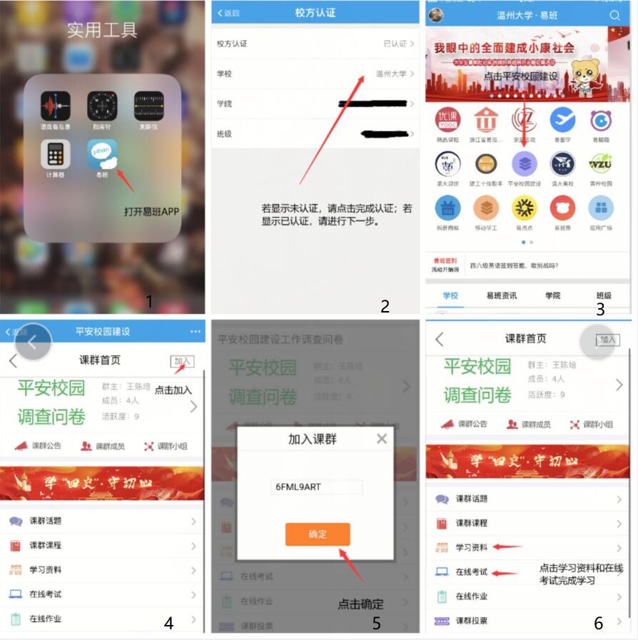 员工完成学习后,登入易班APP平台进行答题测试(具体操作详见下图)