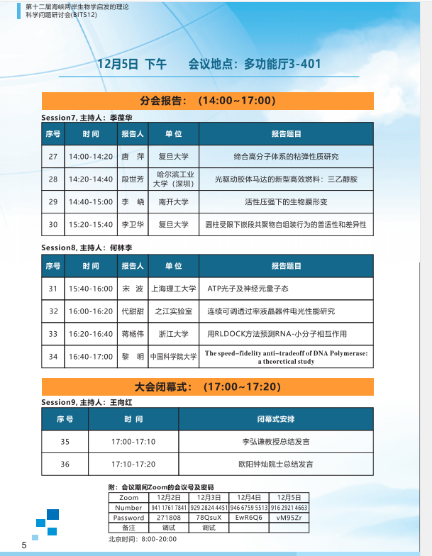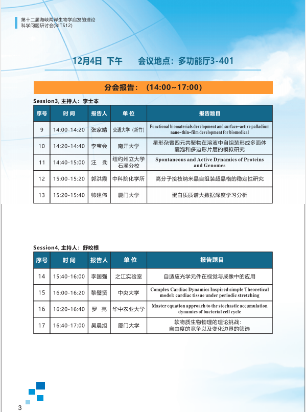 第十二届海峡两岸生物学启发的理论科学问题研讨会(BITS12)