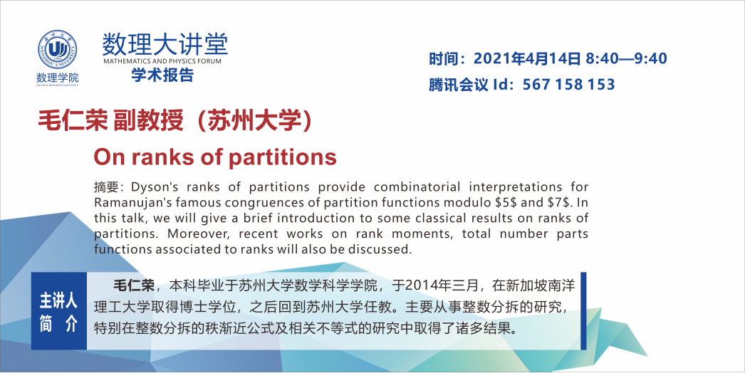 2021年4月14日苏州大学毛仁荣教授学术报告