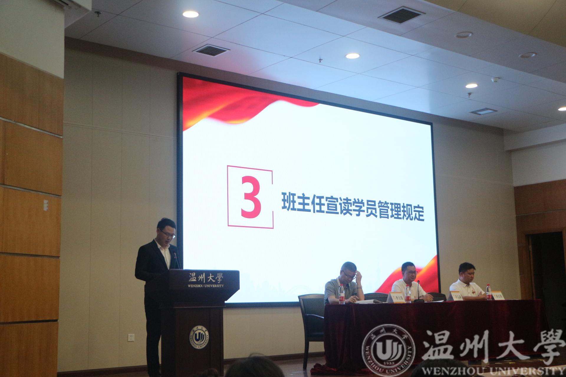 此次发展对象培训班由电气与电子工程公司辅导员潘龙飞担任,在开班仪式上班主任潘龙飞宣读了学员管理规定。潘老师着重强调了此次预备党员培训班的纪律,希望学员们通过培训端正入党动机,坚定理想信念,为早日成为一名光荣共产党员奠定基础。