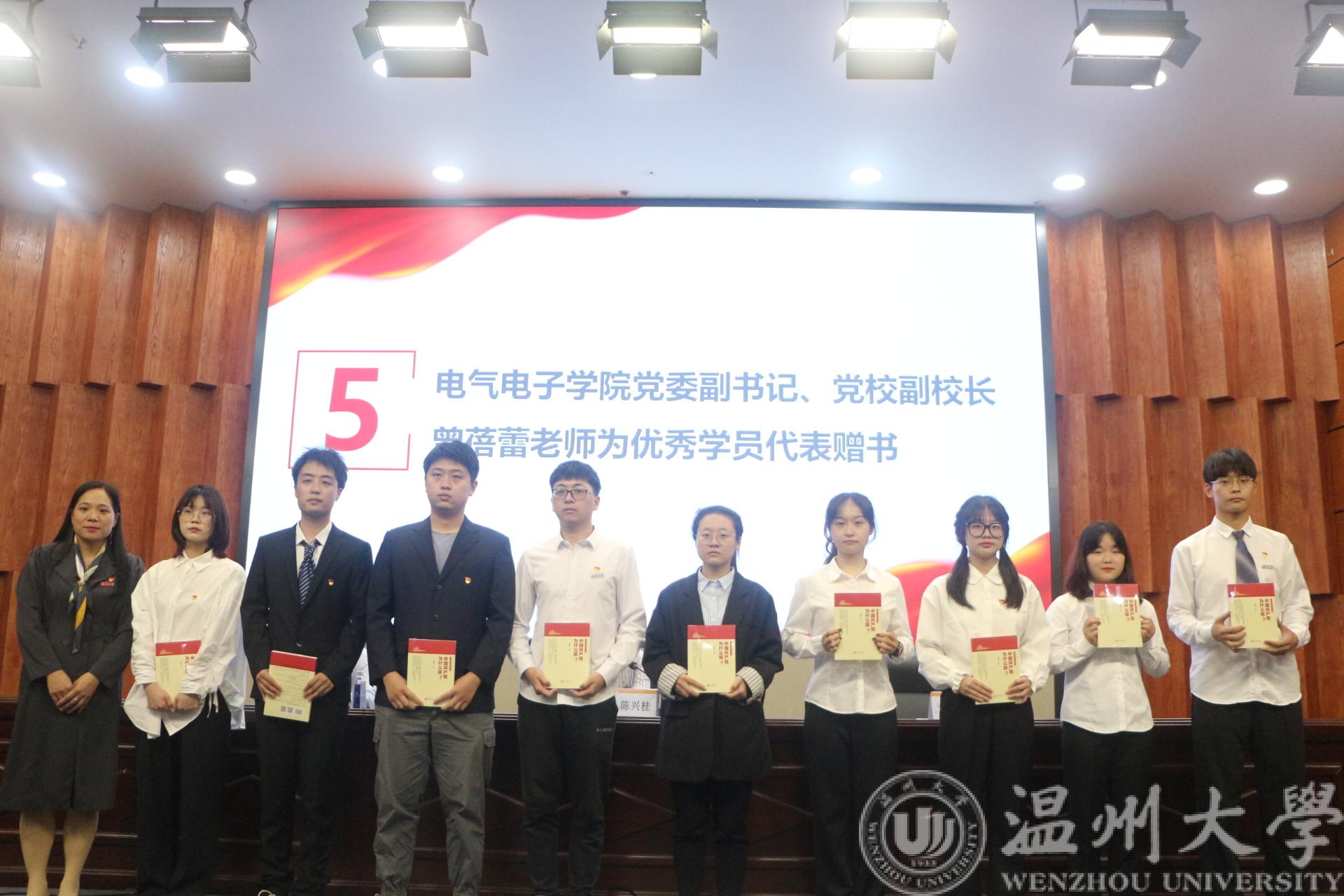 最后,电气电子公司党委副书记曾蓓蕾老师为优秀学员代表赠送纪念书籍《中国共产为什么能》,并对优秀学员给予了鼓励。