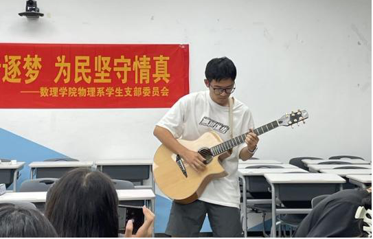 我们多么希望时间能够暂停,因为青春是如此的美好又如此的精彩。在由陆奕同志清唱的《凤凰花开的路口》、21物理集体朗诵的《做最好的自己》、孙晨阳同志弹奏的吉他曲《Wings》中,大家对于青春的解读是充满激情又富有诗意的,青春的美丽与珍贵,就在于它的无邪与无瑕,在于它的可遇而不可求,在于它的永不重回。