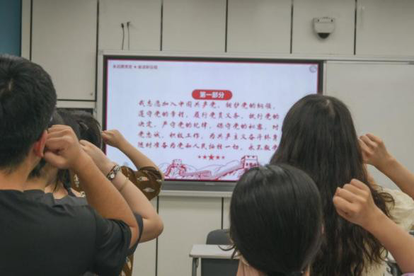 全体起立,高举右拳,由19级党员带领全体成员重温入党誓词,大家用铮铮誓言宣誓了马克思主义信仰、共产主义信念以及对党和人民的忠诚。希望未来每一位党员和预备党员不忘初心、牢记使命,坚定“永远跟党走,奋进新征程“的决心和信心,以实际行动践行入党誓词。