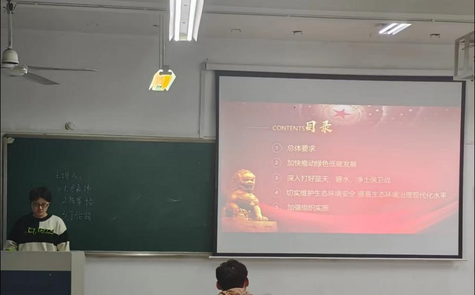 林佳妮同志首先通过视频《求是》使入党积极分子们认识到我国对全面生态环境保护在不断重视,但我们当前的生态环境压力仍未得到根本缓解,生态文明建设正在进入关键时期,因此主讲人号召大家践行好以“绿水青山就是金山银山”为核心理念的习近平生态文明思想,并向入党积极分子提出了一系列举措和任务,如明确污染防治攻坚战的总体思路,在生活中的小事上学会低碳环保,促进绿色发展,低碳发展和可持续发展。