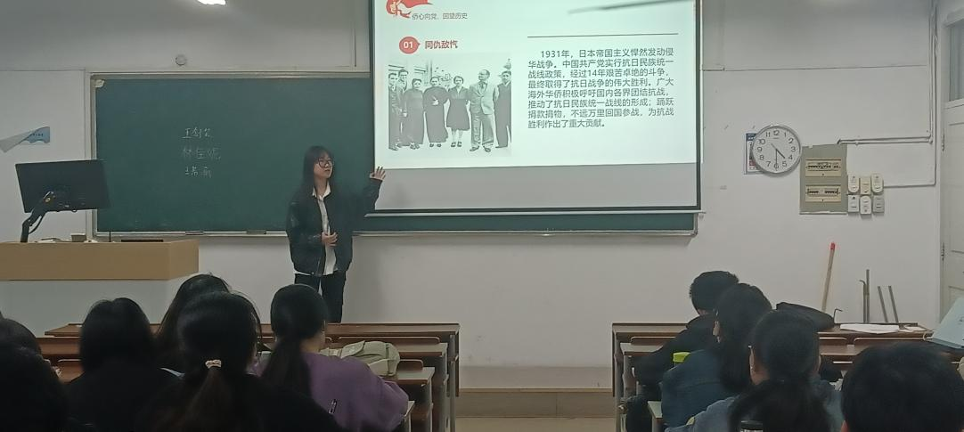 习近平总书记曾提出“团结统一的中华民族,是海内外中华儿女共同的愿望。实现中华民族伟大复兴,是海内外中华儿女共同的梦”的重要论述。主讲人从多个方面切入,让大家了解到百年来,广大侨胞始终心系祖国,在中国革命、建设和改革开放的各个时期发挥着独特作用。历史车轮滚滚向前,实现中华民族伟大复兴的历史进程不可逆转,在未来我们也要不断凝聚侨心侨力,携手共筑中国梦。