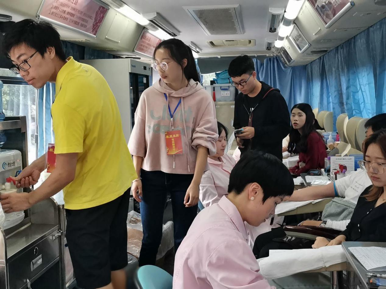 为了普及献血知识扩大活动影响范围,支部党员志愿者进入楼栋寝室进行讲解宣传,并在学区设置大型喷绘灯箱进行氛围营造。活动当天,参加献血的同学早早的排起了长龙,党员志愿者积极主动维护活动秩序,对第一次献血紧张的同学进行心理疏导,并协助血站工作人员进行信息采集、血液化验等工作。党员志愿者出色的工作表现得到了血站工作人员的一致肯定。首次参与工作的党员志愿者表示以前都是在社区街头看到献血车,今天自己能够亲身参与体验献血活动,有一种莫名的兴奋和自豪,虽然自己的贡献很微小。第二次参与献血的3044永利丁同学说:“我已经累计献了500毫升了,希望我的热血能够帮助到更多的人,以后我将继续参加献血活动,用热血诠释生命的真谛”。