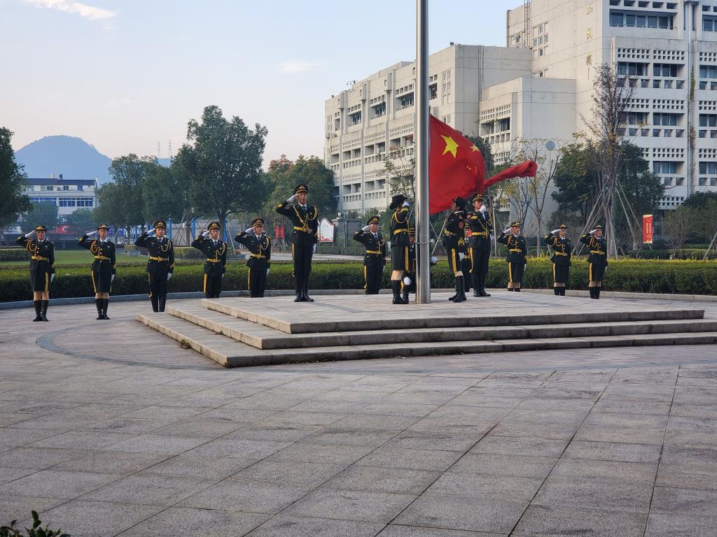 7:00,升旗仪式准时开始。伴随着雄壮有力的《义勇军进行曲》,五星红旗在国旗护卫队的守护中冉冉升起。同学们集体行注目礼,庄严肃穆。升旗仪式结束后,主持人发表国旗下的讲话,希望同学们能够永怀赤诚之心,传承“一二·九”精神,让爱国主义在新时代继续闪光。随后,校合唱团为本次纪念活动演唱了红歌《不忘初心》。“不忘初心,继续前进。万水千山,最美中国道路”,一字一句都透露着他们心中对祖国的那一份热爱。最后,国旗护卫队的成员为同学们带来了诗歌朗诵《一二·九,血与火的星光》,铿锵有力,激情澎湃,言语中散发着青年人的热血与斗志,是对未来祖国的美好憧憬。