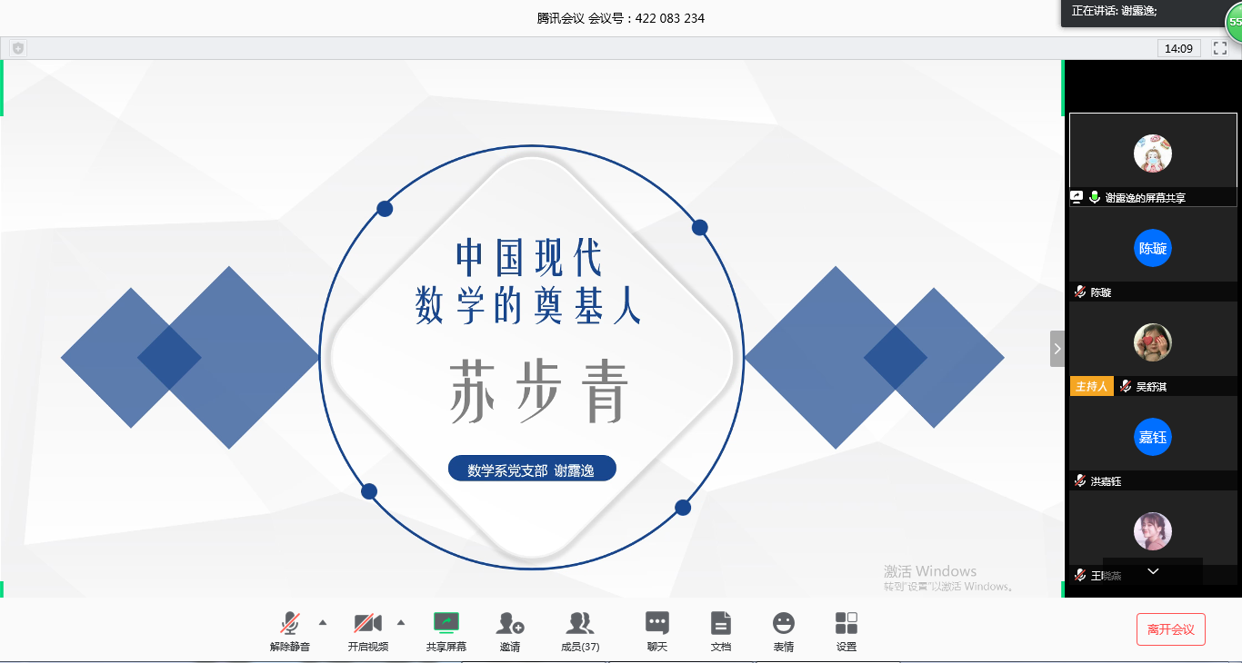 2020年3月28日下午,3044永利数学系员工党支部全体党员开展了“讲数学家故事,扬数学家精神”特色活动。由于疫情影响,此次活动通过腾讯会议APP线上开展,由吴舒淇同志一手策划,杨惺燕、凌佳凤等同志着手准备,共35名党员参与其中。活动的主要内容为讲温籍数学家故事,扬数学家精神。
