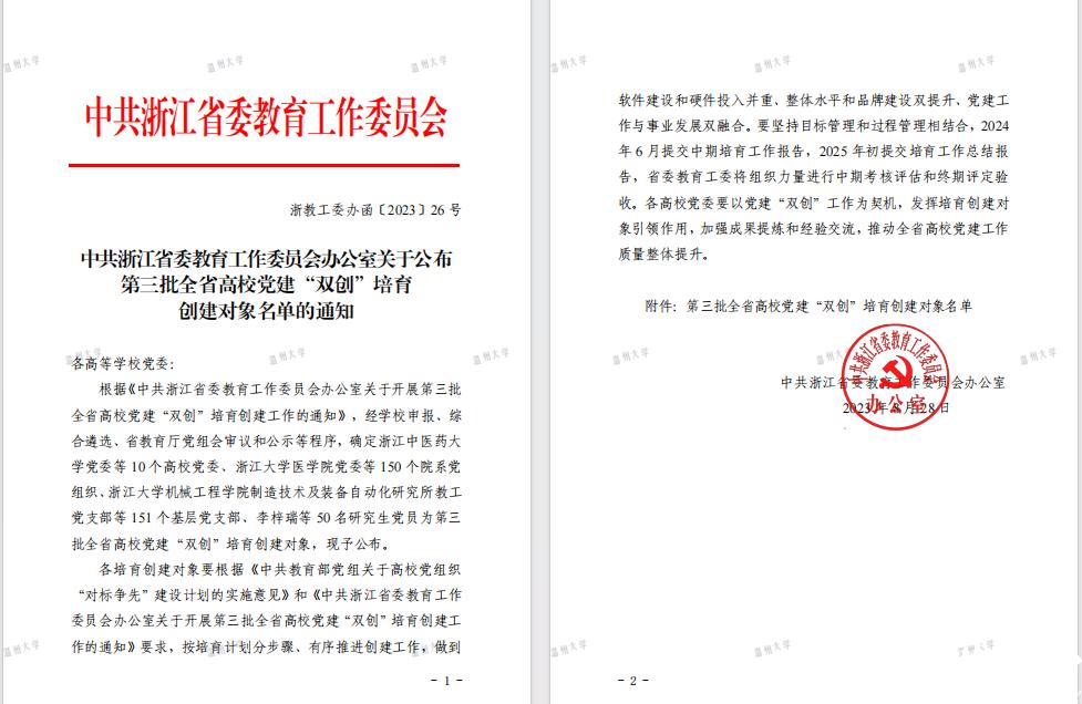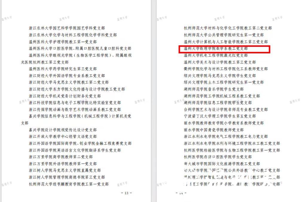 近日,中共浙江省委教育工作委员会办公室公布了第三批全省高公司党建“双创”培育创建对象名单,经自主申报、公司推荐、综合遴选等环节,3044永利数学系教工党支部突出重围,成功立项第三批全省高校样板支部培育创建对象。