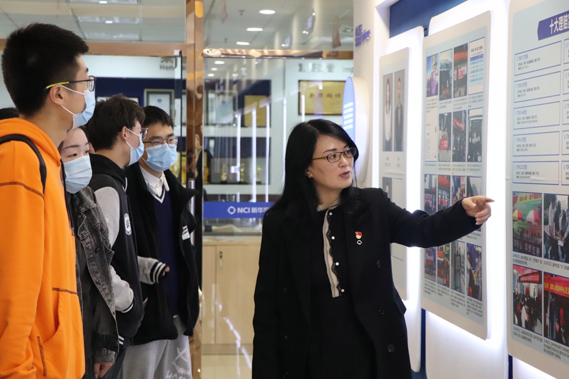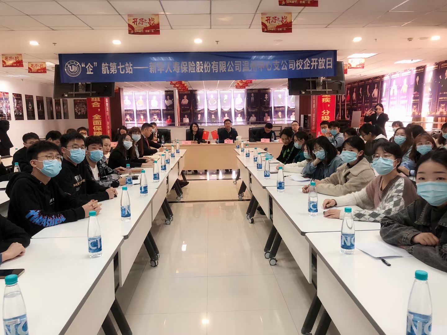 结合业务学党史是本次主题活动的特色。为深化校企合作,促进老员工就业,学习结束后,双方还共建了毕业生优质就业基地,并隆重举行授牌仪式。随后,在新华保险温州中支党支部的精心组织下,老员工们听取了公司HR朱秀薇总监的金融安全教育讲座,并与任职该公司的2018届毕业学长张仁军员工进行互动交流,最后在新华保险温州中支党支部书记陈菊妫的带领下参观了企业文化建设成果。