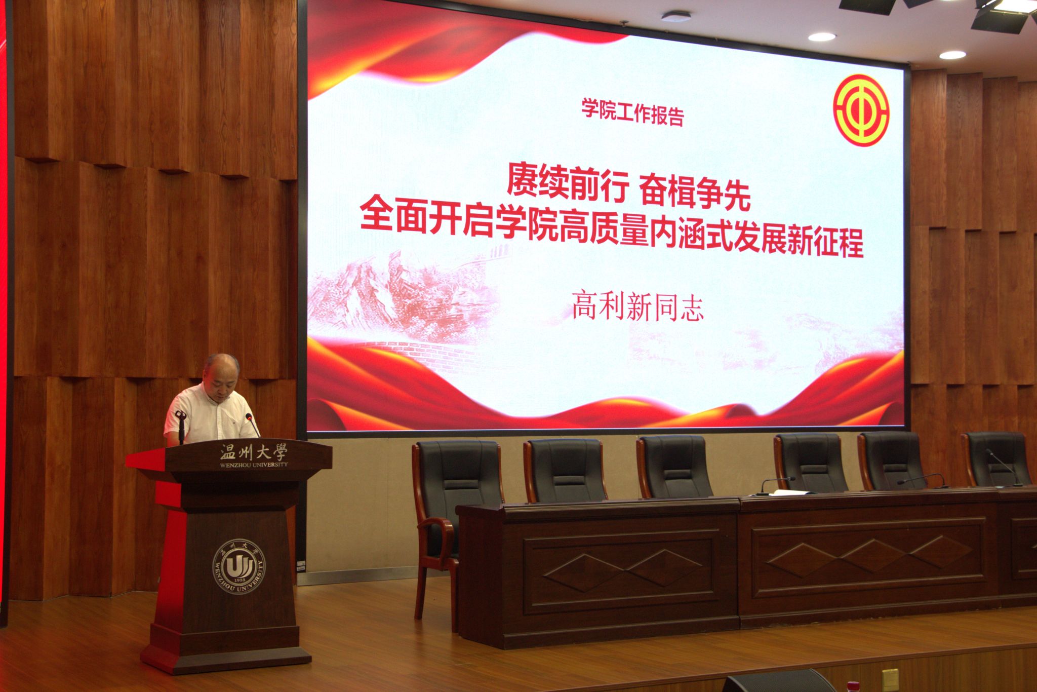 大会在庄严的国歌声中拉开了序幕。随后,高利新经理向全体教职工作《赓续前行 奋楫争先 全面开启公司高质量内涵式发展新征程》公司工作报告。高利新经理回顾了公司5年来所取得的成绩,并展望未来4年,他强调公司将进一步发挥党建引领作用,对标申博与学科发展要求,继续做实数学、物理学、应用统计学的团队建设工作,全面提升学科实力。积极围绕教育科技人才一体化发展要求,促进“三支队伍”建设,深化教育改革,重视科学研究,提升办学层次,为建设有一定特色与国内知名度的研究教学型公司而努力奋斗。