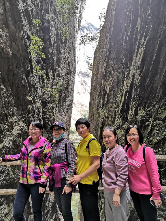 采摘活动结束后,大家来到了永嘉书院。永嘉书院景区集山、水、石、林、滩、瀑于一体,兼具了楠溪江所有的景致特征。虽已渐入水瘦山寒时节,但漫步在风光秀美的景区内,大家心情非常舒适。在互相鼓励的加油声中,大家还克服困难爬上了高高的“一线天”景区,真切地体验了一回集体的力量。一位老师说,要是没有大家的鼓励,自己一个人是绝对不会来爬这么陡峭的山的。朴素的言语,也深深印证了集体的重要性。