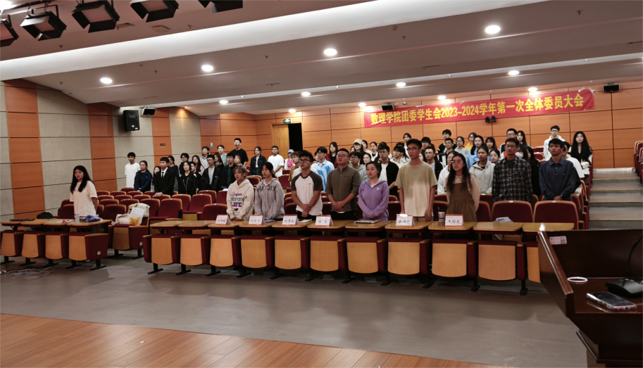 第一项议程:合唱会歌。全体成员郑重起立,合唱会歌。正如歌词“命运让我们相遇”所说,数理团学的成员们相聚于此,既心怀对员工工作的热爱,也有着各自的理想与抱负,在团委员工会这个平台上,共同踏上追梦的旅程。