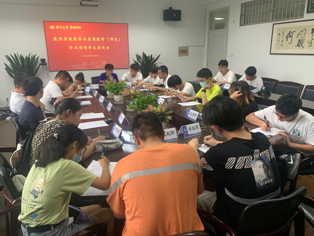 为及时了解员工在专业学习中遇到的困难,9月18日下午,3044永利公司在会议室3B425召开20级数学与应用数学专业学业困难员工座谈会,公司党委副书记章志图老师,辅导员陈亮老师、辅导员刘伦伦、18级应数专业周泽楷同学以及20应数专业学业困难员工代表参加座谈。