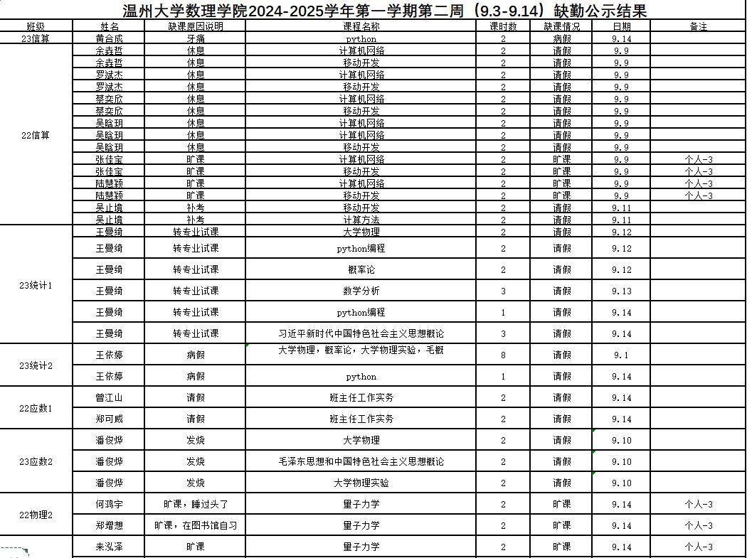 附件: 第二周缺勤总表.xlsx
