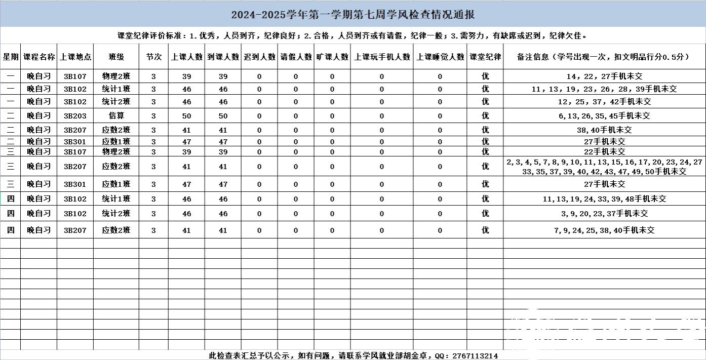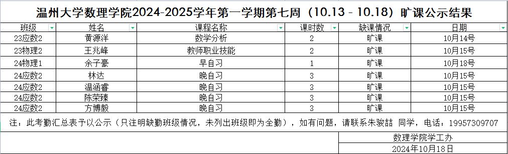 附件【第七周旷课公示.xlsx】已下载次
