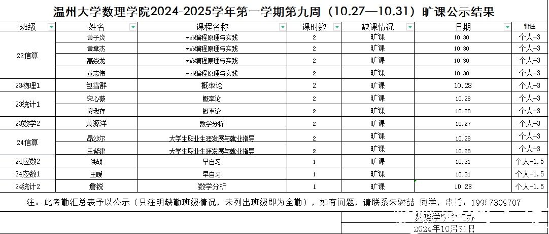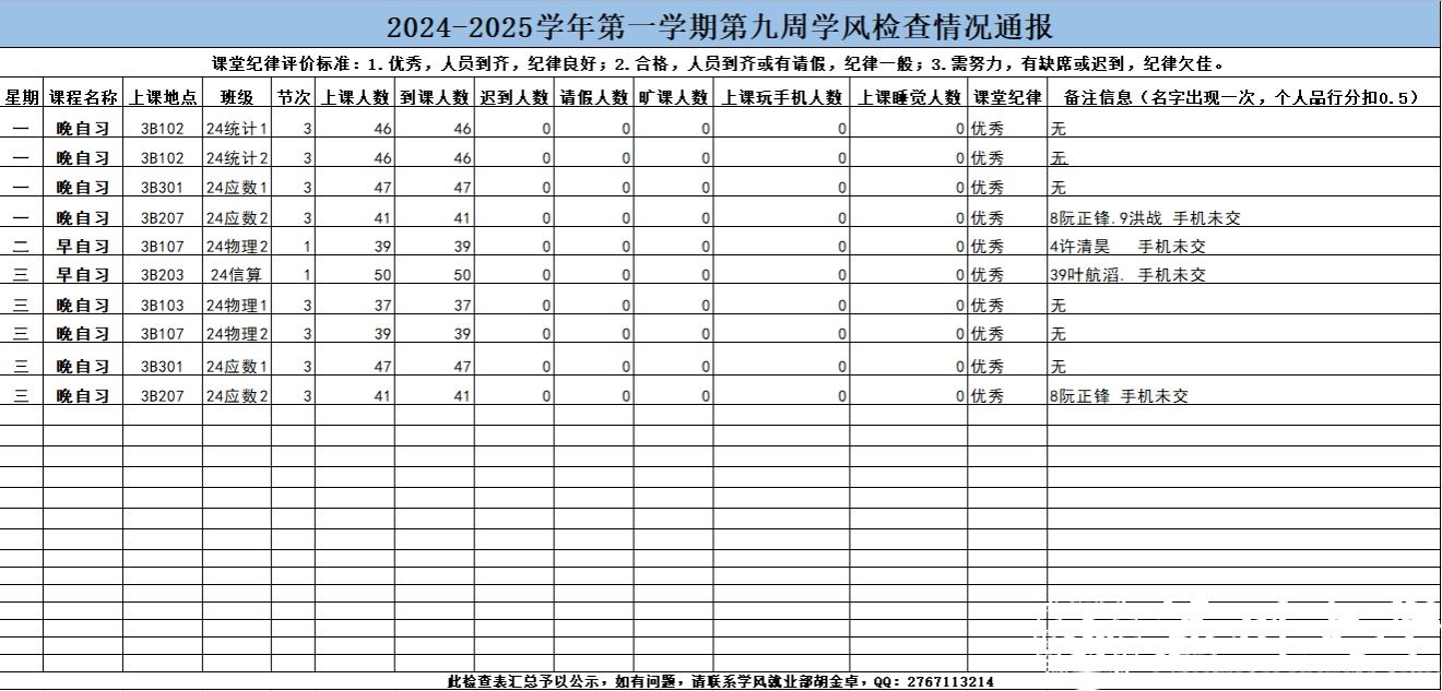 附件:第九周旷课公示.xlsx 学风检查通报第九周.xlsx