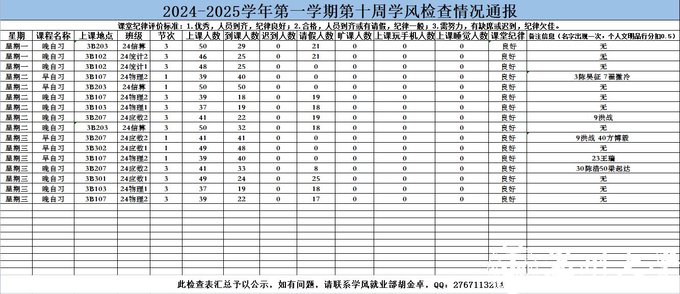 附件:第十周旷课公示.xlsx 学风检查通报第十周.xlsx