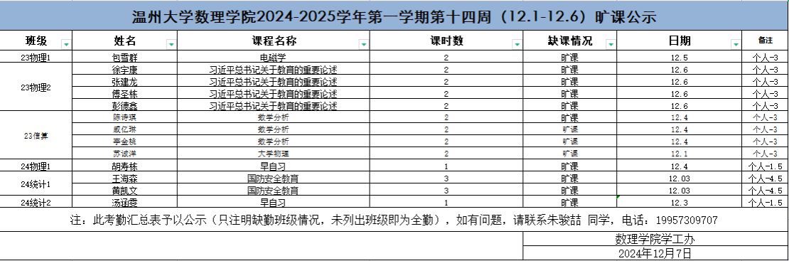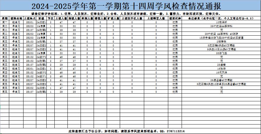 附件:第十四周旷课公示.xlsx 学风检查通报第十四周.xlsx 第十四周考勤表.xlsx