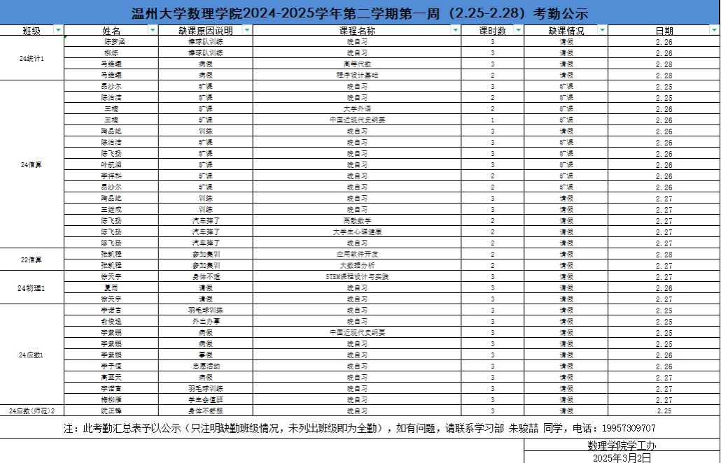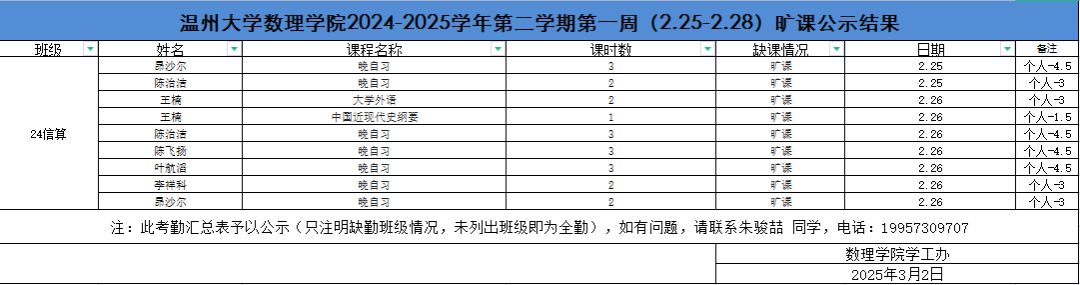 附件:第一周旷课公示.xlsx 第一周考勤表.xlsx