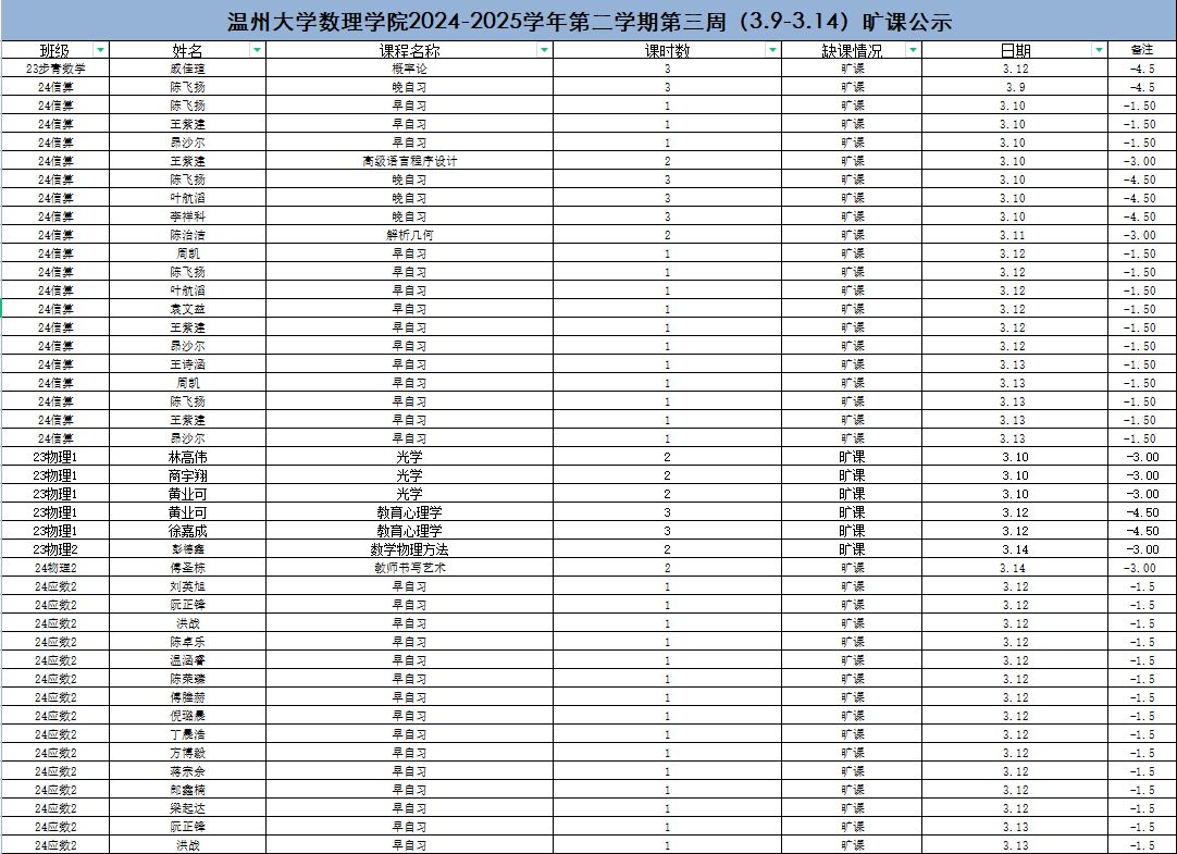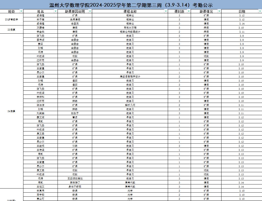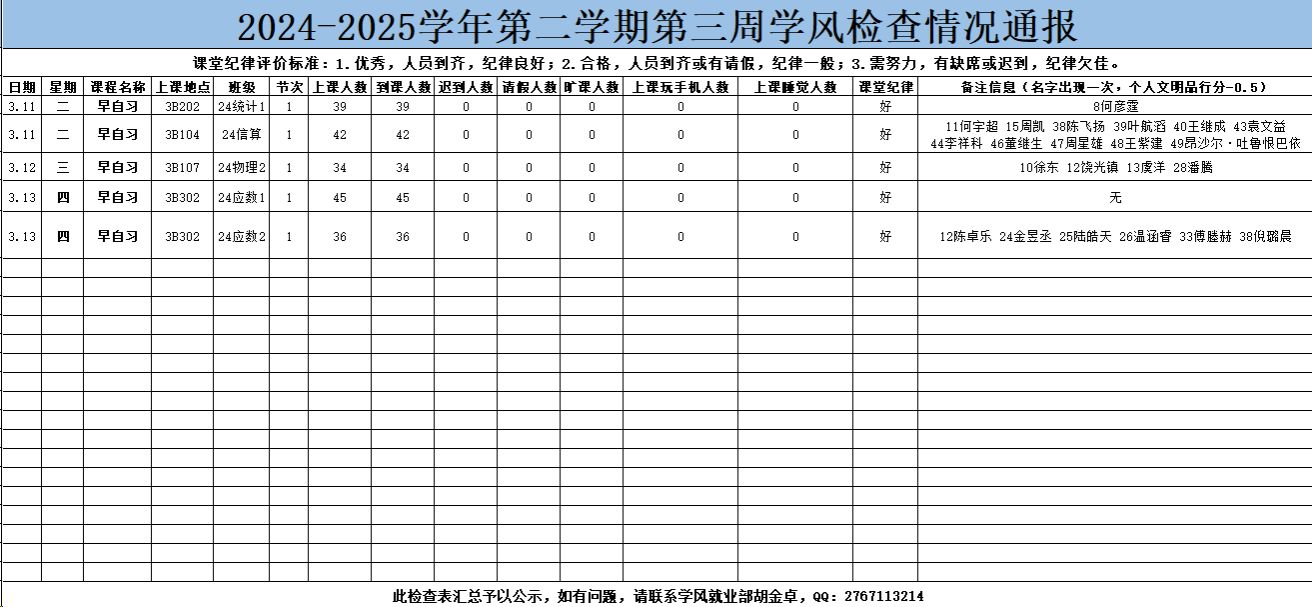附件:第三周旷课公示.xlsx 第三周考勤表.xlsx 学风检查通报表第三周.xlsx