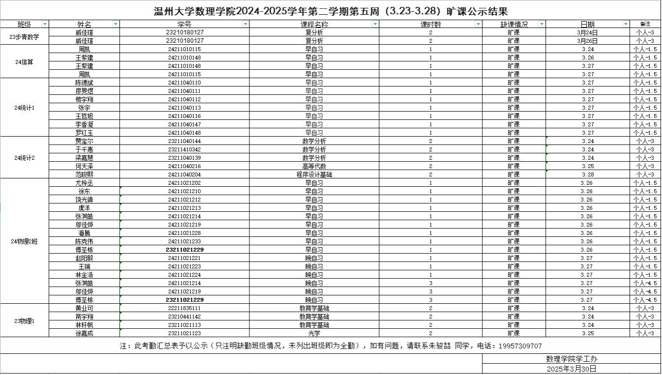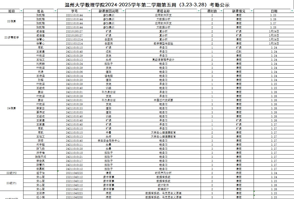 附件【第五周旷课公示.xlsx】已下载次