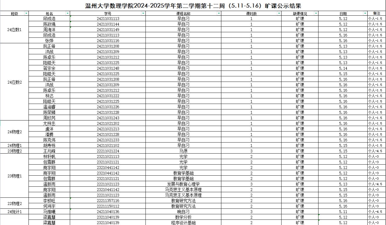 附件【第二学期第十二周旷课公示.xlsx】已下载次