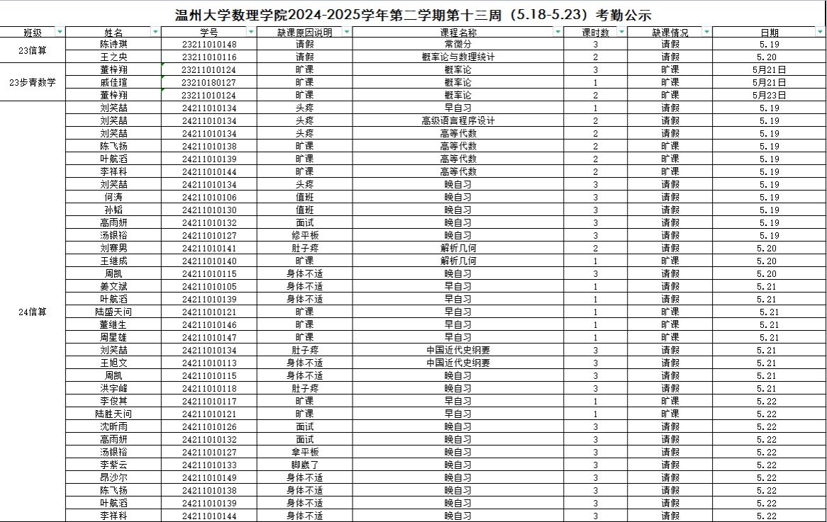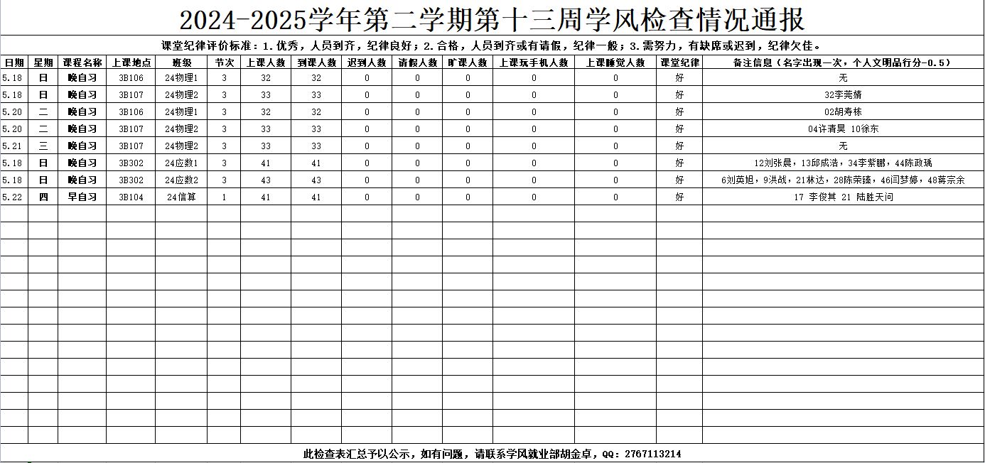 附件【学风检查通报表第十三周.xlsx】已下载次