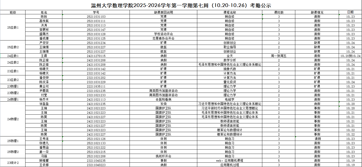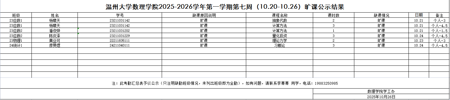 附件【3044永利2025-2026学年第一学期第七周(10.20-10.26)旷课公示结果.xlsx】已下载次