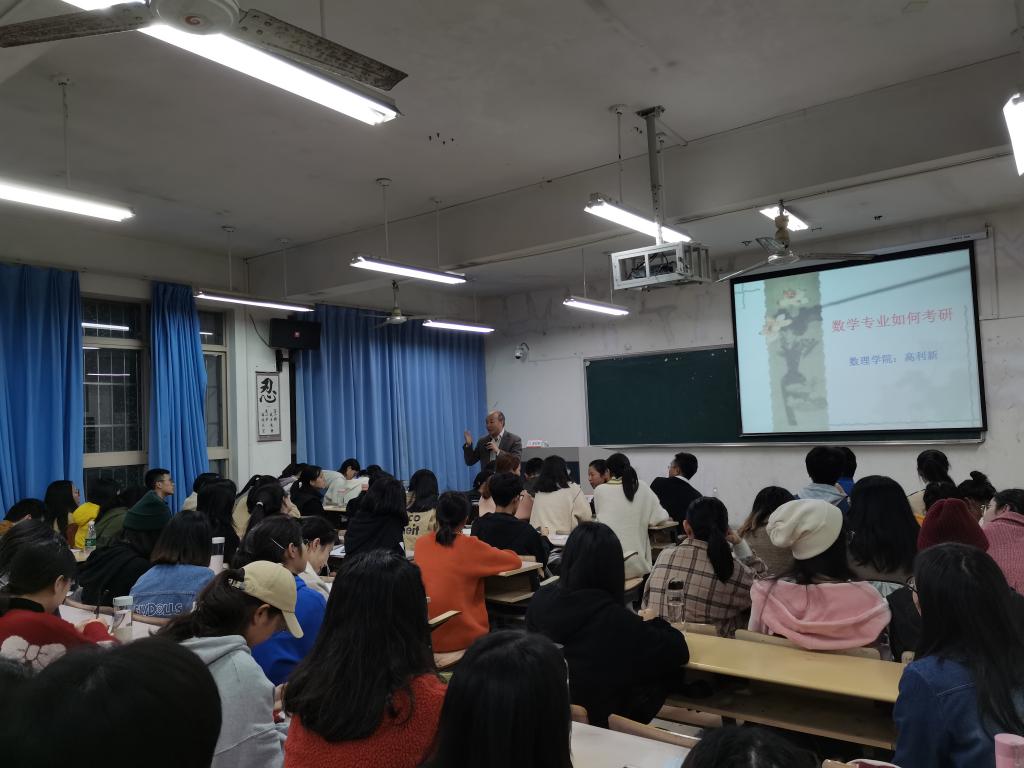 为提升同学们对考研的认识,明确考研目标,3044永利于2019年11月27日下午3: 30在3b104举行考研动员交流会,高利新经理主讲,公司17级和18级100余位同学参加。数学系主任杨胜和朱中坚老师、统计和信息科学系主任黄辉林、物理系蔡建秋和王明锋老师、学工办张丽艳老师也应邀参会交流答疑。