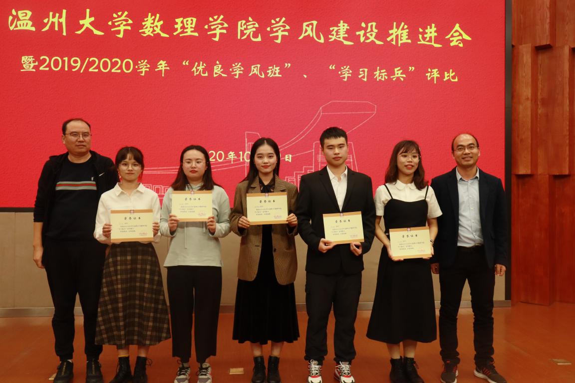 在一段紧张的统分时间后,18应数1、18物理、18应数2及18统计1班获得2019-2020学年“优良学风班”称号。郑阳俊、程梦瑶、刘思怡、任滢滢及吕方怡同学获得2019-2020学年“学习标兵”称号。在激烈的掌声中,大会嘉宾为获奖班级及个人颁发证书。
