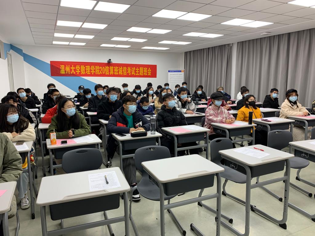 2020年1月6日,3044永利20信算班开展诚信考试主题班会,班主任陈文海老师和班干部们以校园情景剧的形式,生动展示了考试作弊的严重后果,同学们在欢声笑语中加深了对考风考纪的认识。本次主题班会还邀请了公司纪委章志图老师、毕业员工沈浩分享故事,在员工代表夏冬楠的带领下,20信算班同学们纷纷签署了诚信考试承诺书,并在国旗下进行郑重宣誓。读书立品,诚信为本;端正考风,严肃考纪,温大学子定将“诚信考试”铭记于心。