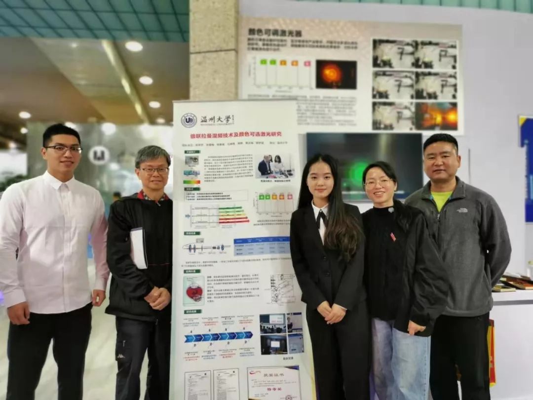 刚刚获得全国挑战杯一等奖的“颜色可调激光器”,展位就在VR环境交互漫游的对面,相对而言,这个科创项目由于专业性强,驻足的市民不是很多,但也正由于其专业性,也吸引了专业人员的目光。笔者在现场看到,有一位台湾同胞对这个项目很感兴趣,不停地与现场的讲解同学探讨交流问,并不住称赞。经进一步了解,这名台湾同胞来自台湾中原大学,长期从事激光教学,目前与我市一家高校合作办学,在温州任教。